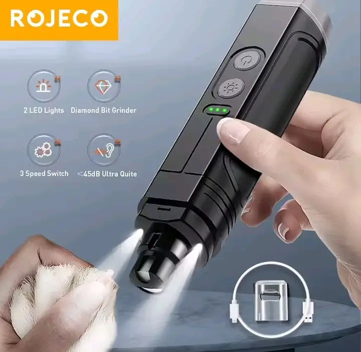 P3 Electric Pet Nail Grinder Professional Dog Nail Clippers + 2 LED Light Rechargeable Cat Claw Nail Grooming Accessories